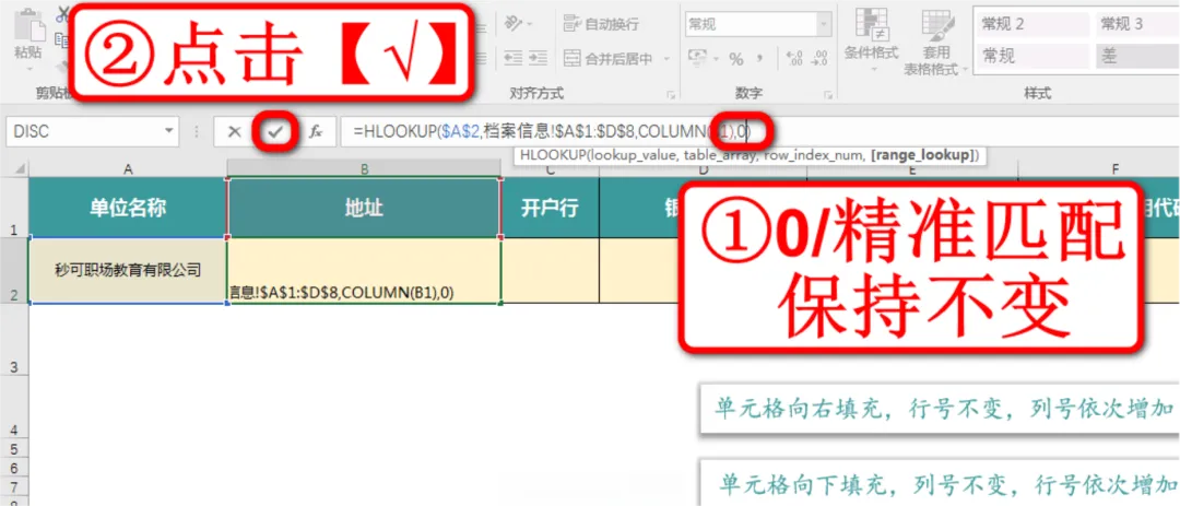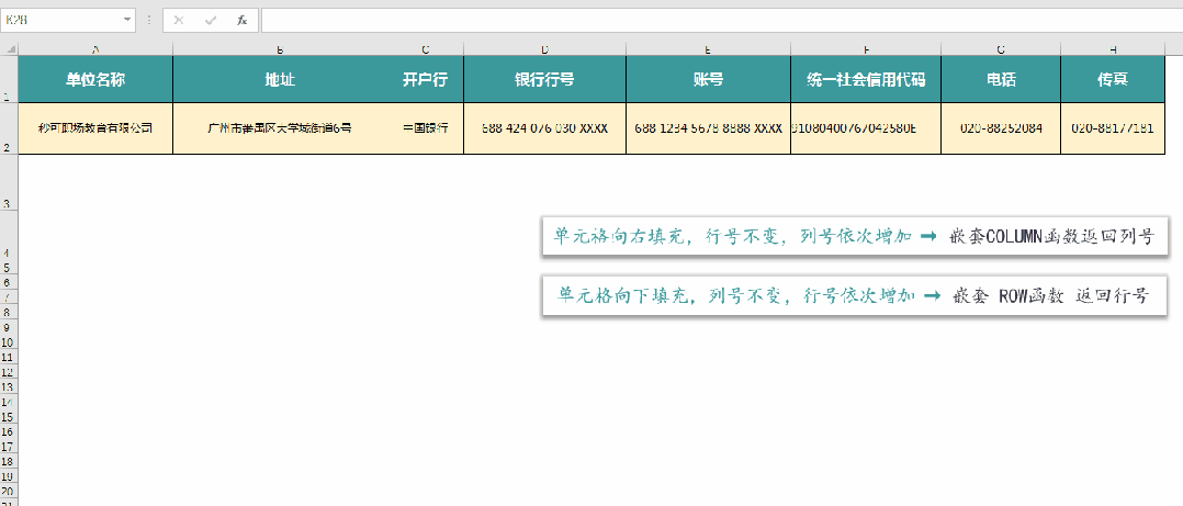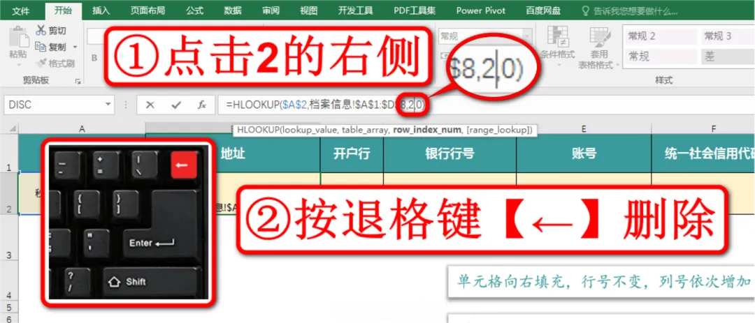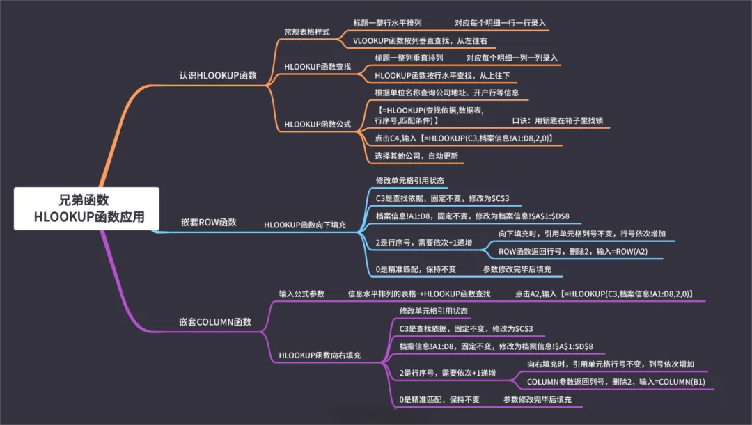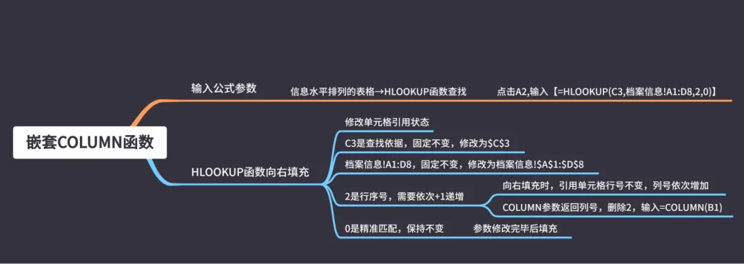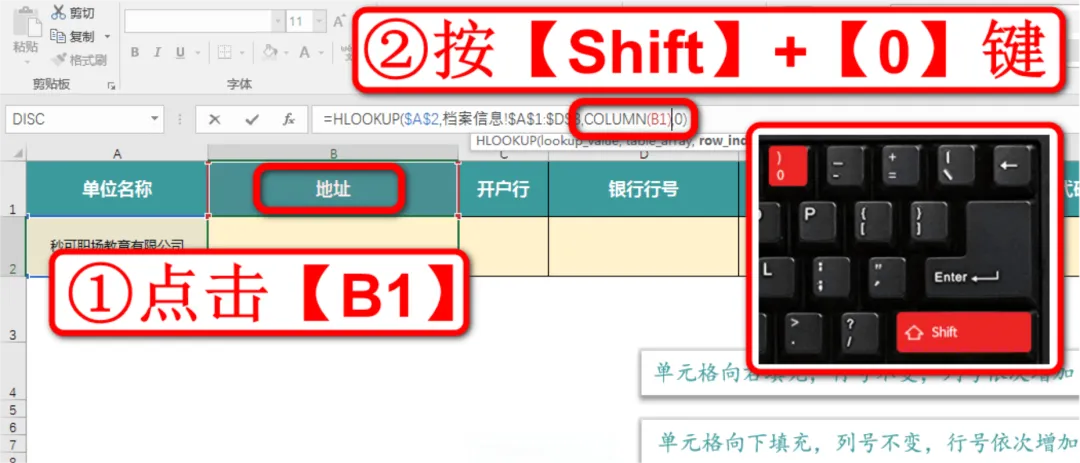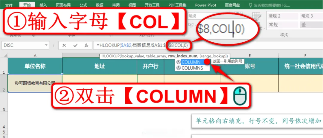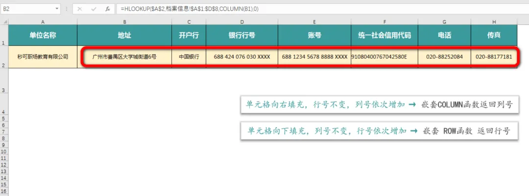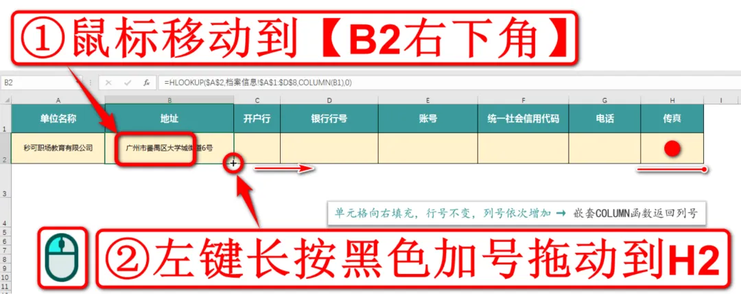 因此我们要嵌套COLUMN函数,借用它返回的列号来自动更新HLOOKUP函数的第3个参数行序号。