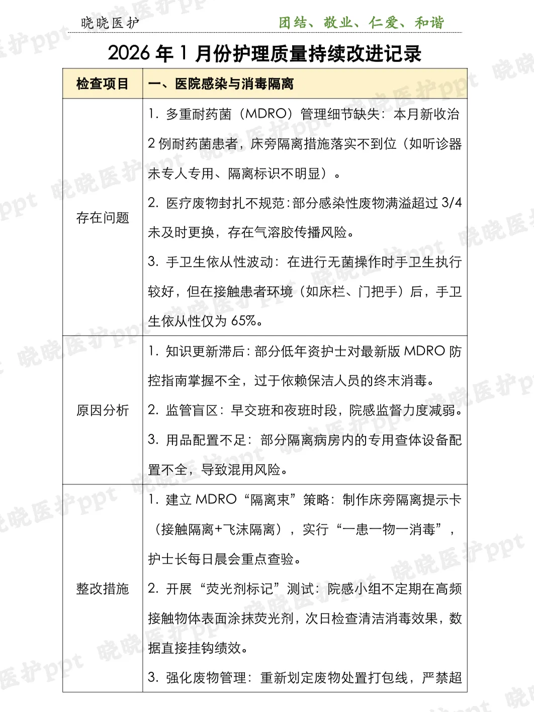2026年1月护理质量持续改进工作全面推进📜,此次本文针对医院感染与消毒隔离、急救与应急管理、护理文书与核心制度、患者安全与健康教育多环节📊痛点精准发力,筑牢患者安全防线,提升护理服务质效。