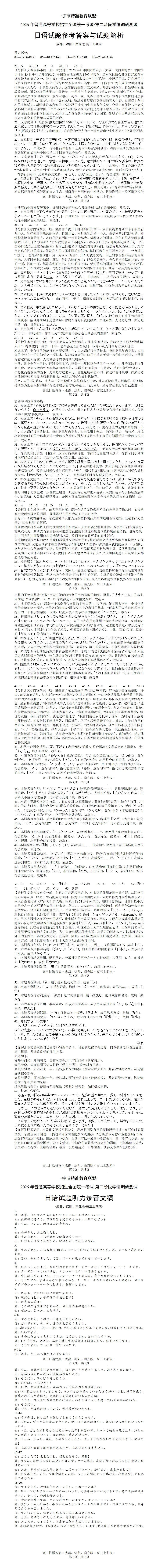 >解析!WORD四川省字节精准教育联盟2026届高三二模1月日语试题(作文:贺卡;わたしの悩み)+听力+答案详解及听力原文