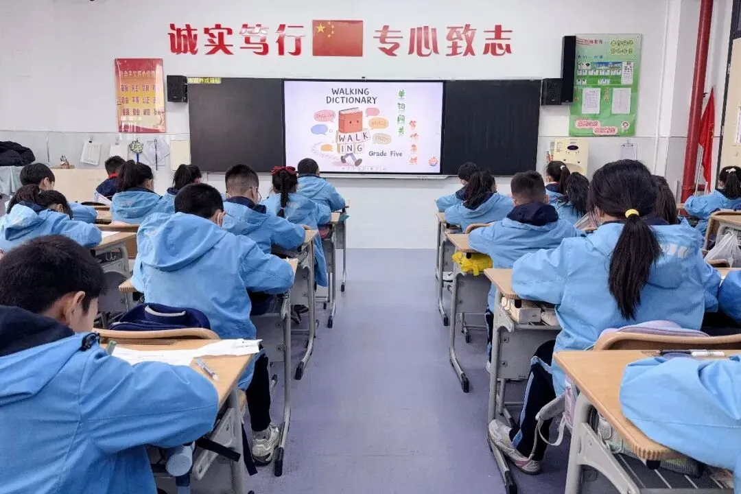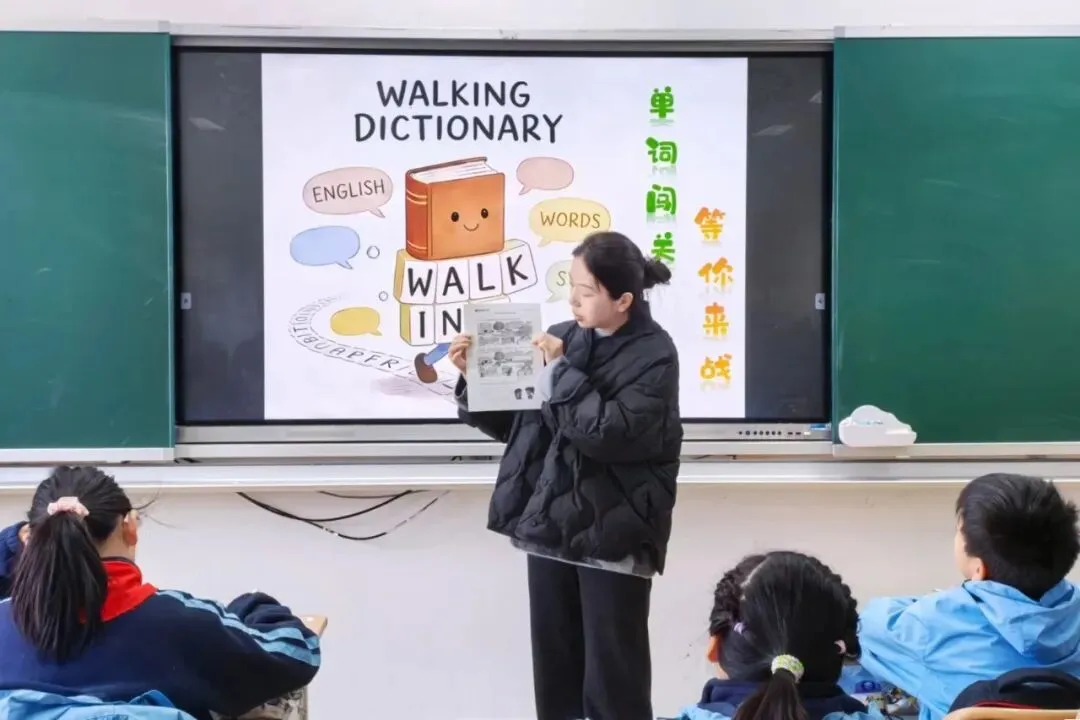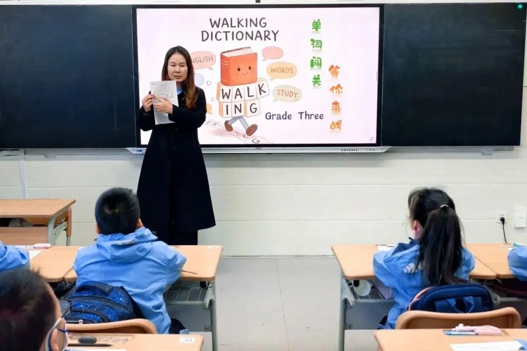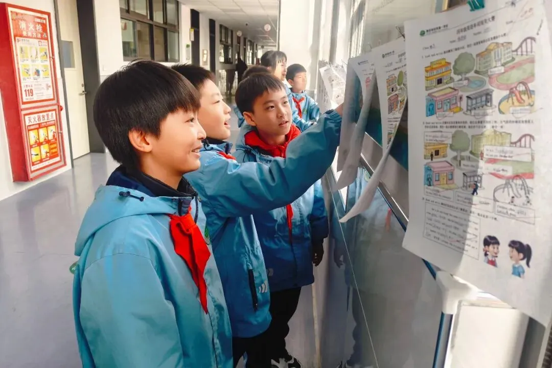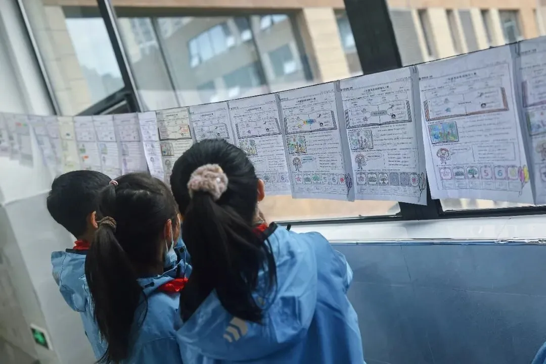 闯关结束?不,精彩才刚刚登陆展示墙!走廊变身“单词星光大道”,一份份优秀作品被用心展出,吸引里三层外三层的“粉丝团”。
