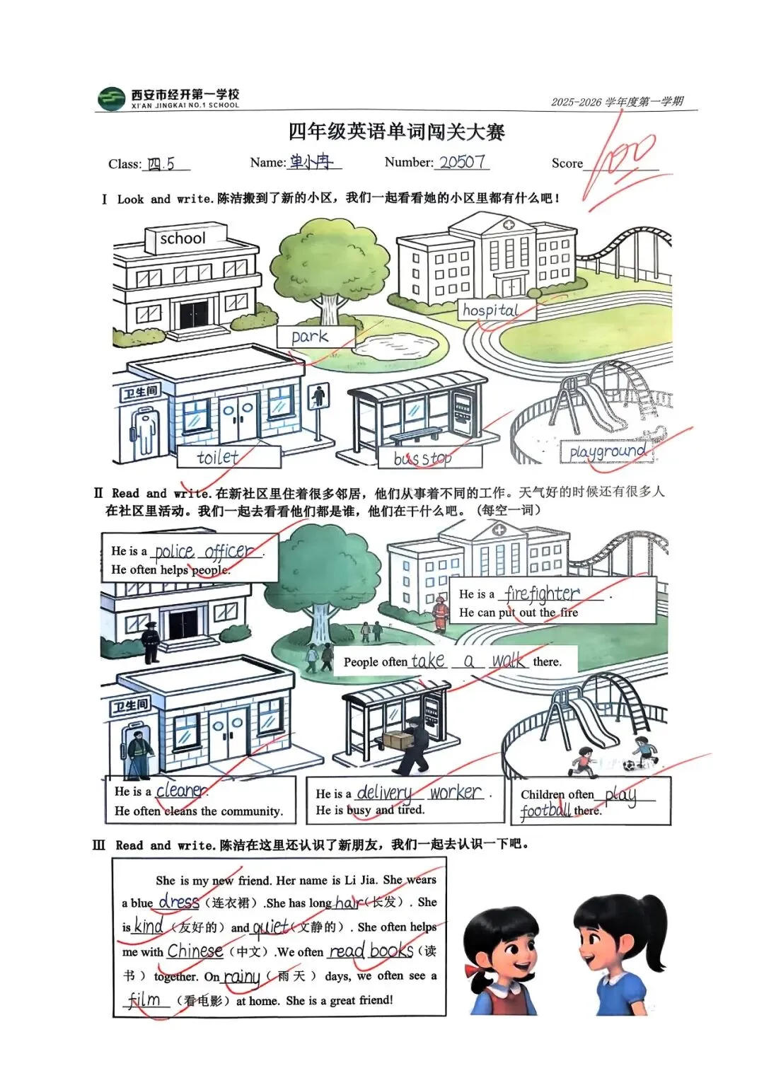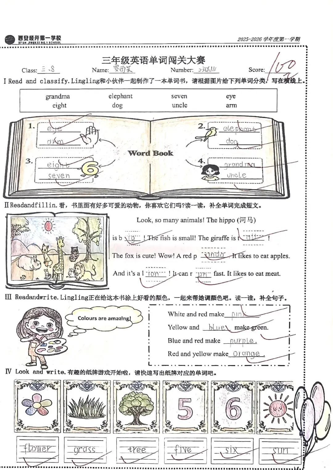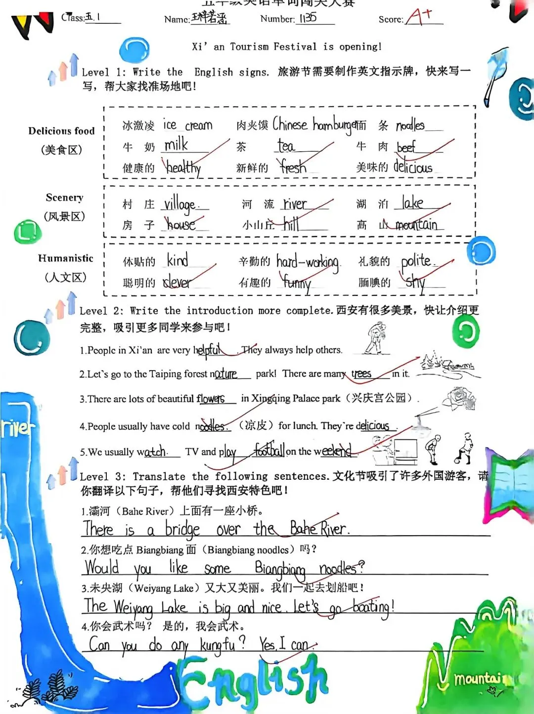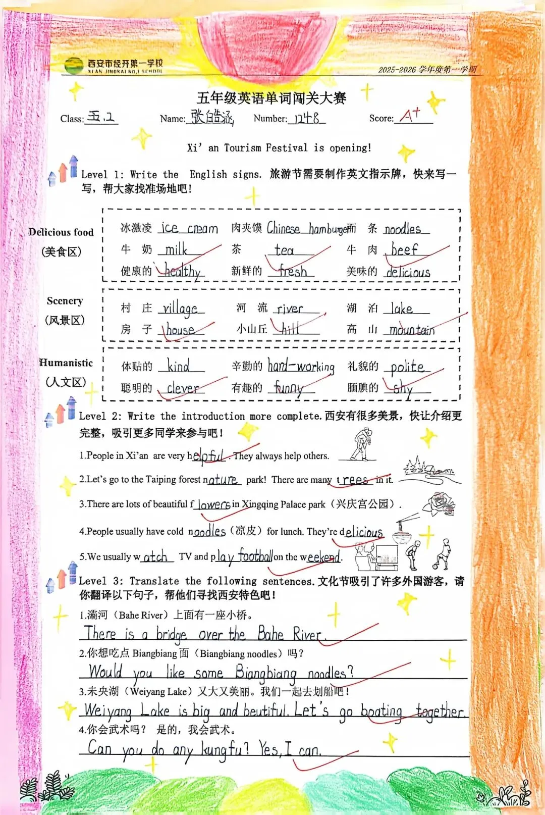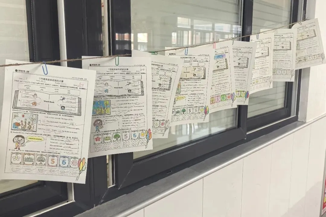 赛后,英语老师化身 “专业评审团”,仔细批阅每一份作品,把拼写无误、书写美观的优秀佳作,精心布置在校园过道的展示区。这一方小小的展示角,瞬间成了校园里最靓丽的风景线,榜样的力量,悄悄在学生心底生根发芽。