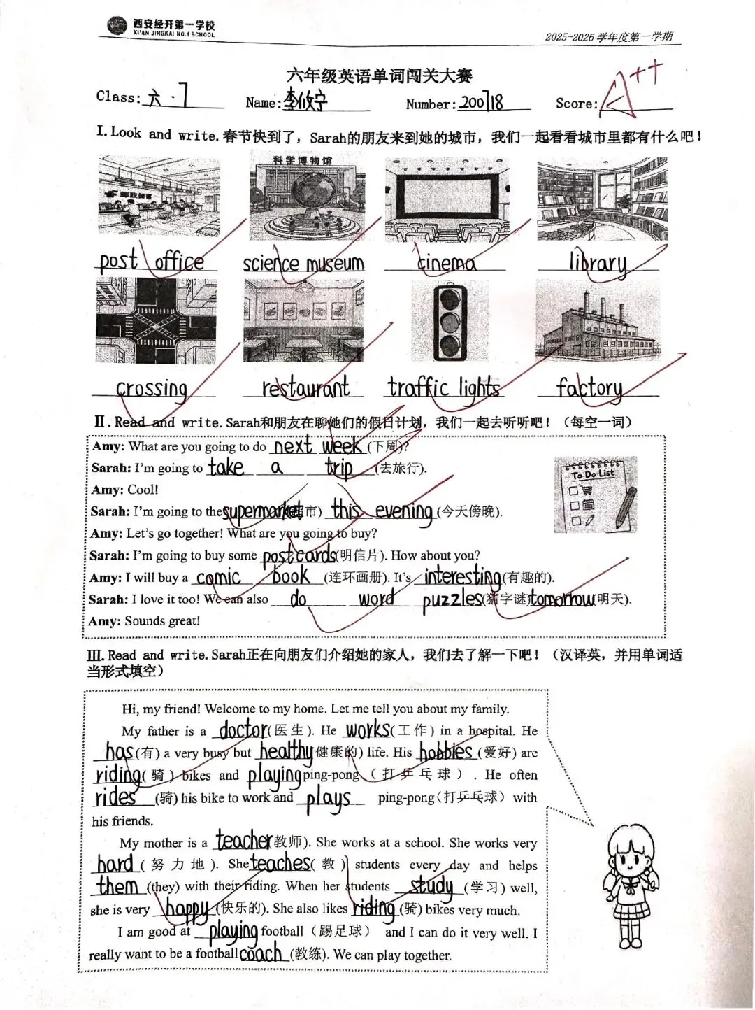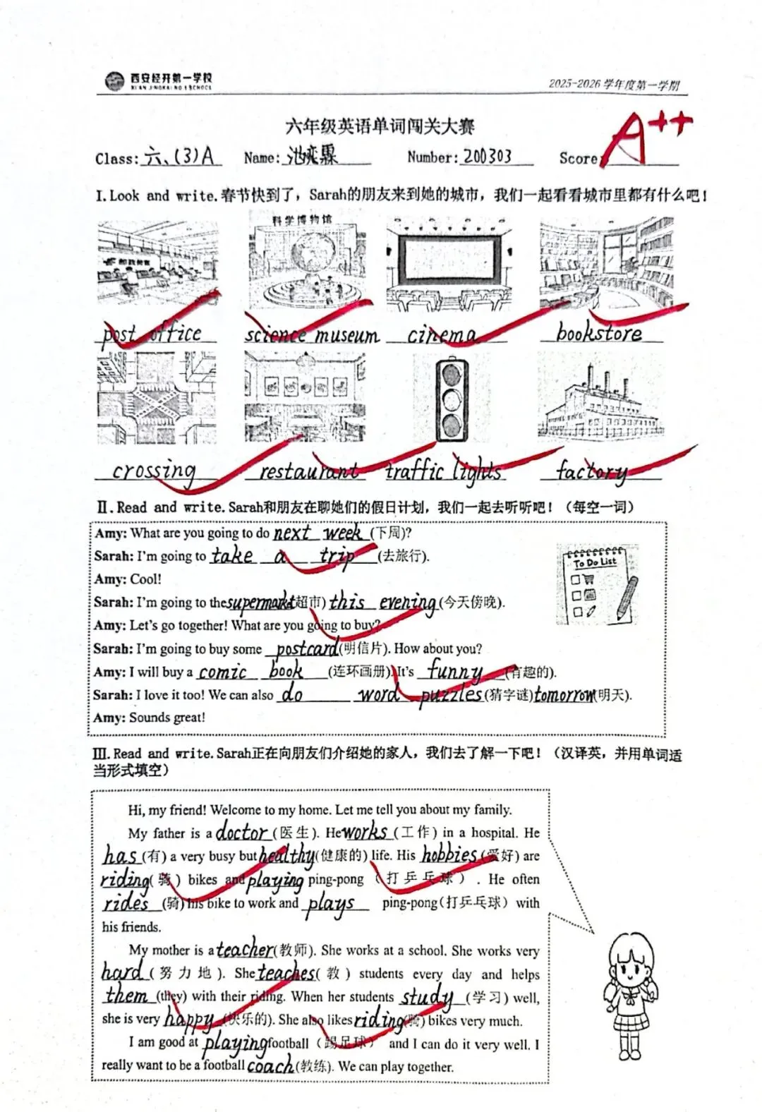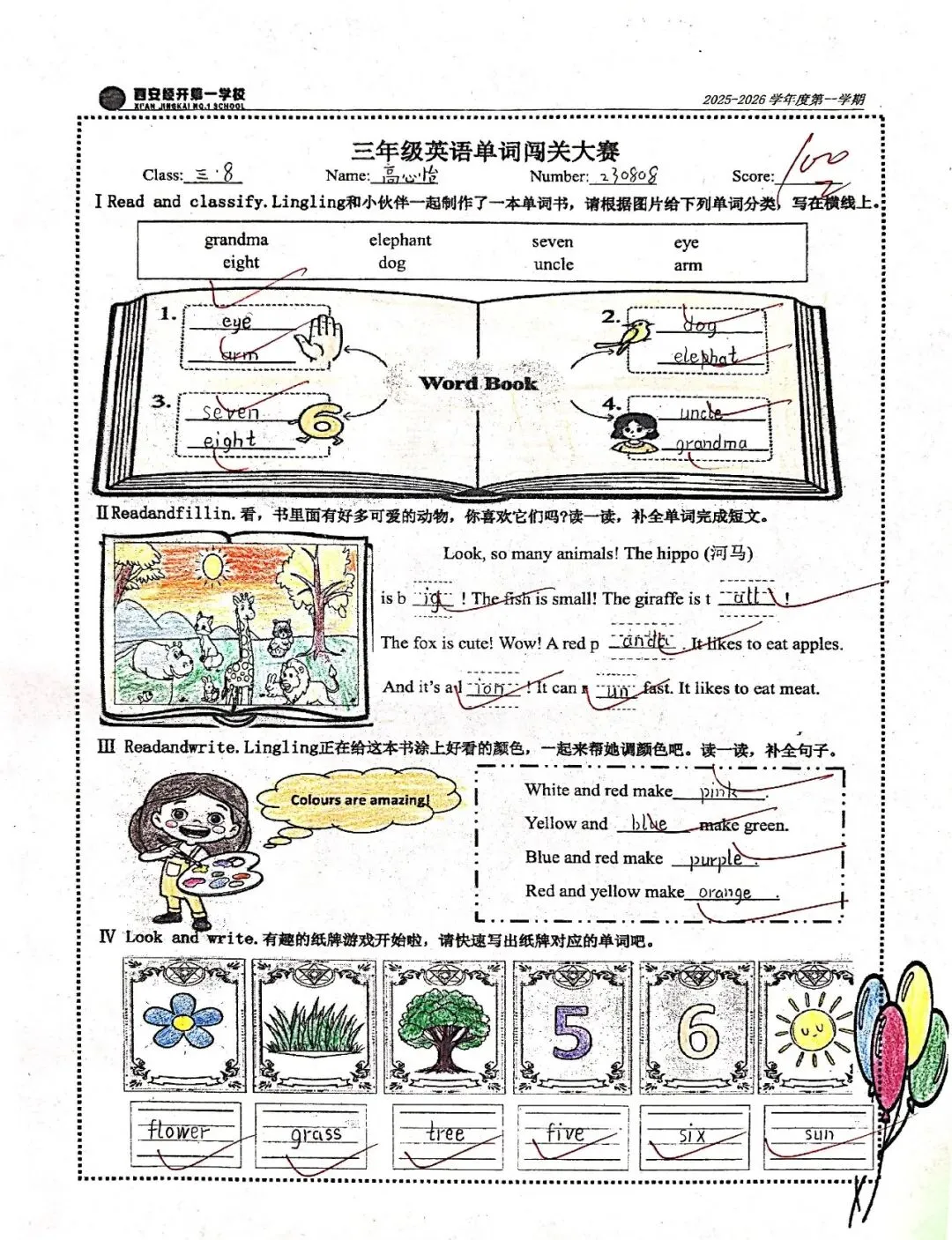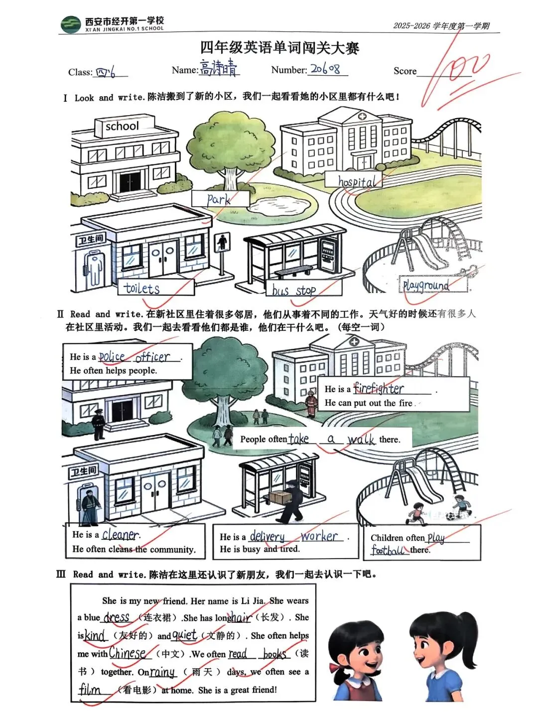 赛后,英语老师化身 “专业评审团”,仔细批阅每一份作品,把拼写无误、书写美观的优秀佳作,精心布置在校园过道的展示区。这一方小小的展示角,瞬间成了校园里最靓丽的风景线,榜样的力量,悄悄在学生心底生根发芽。