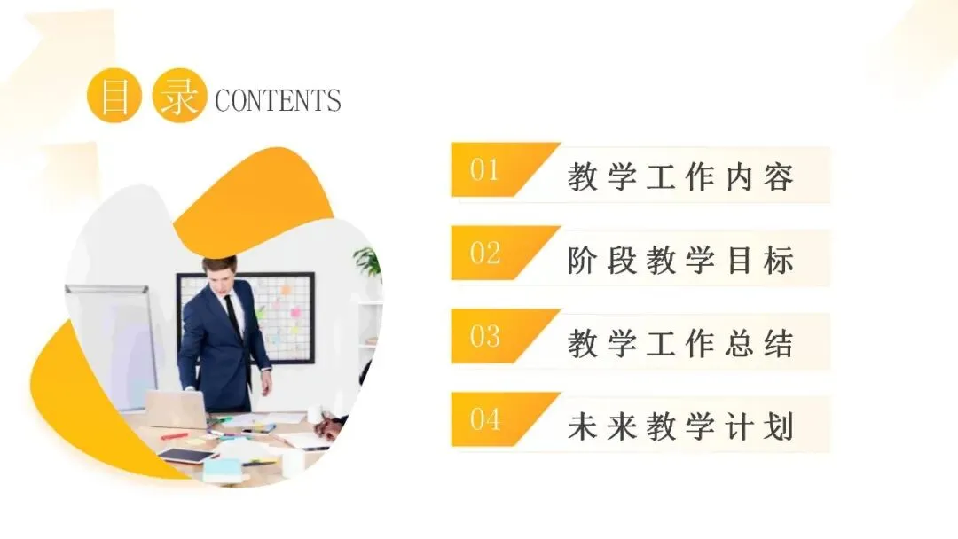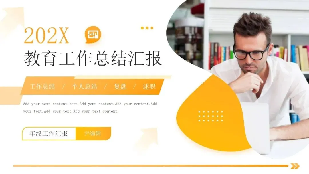【橙色商务人士背景的教育工作总结汇报PPT模板】