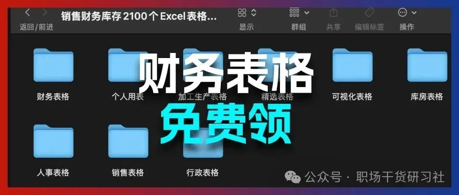领取方式:关注【职场干货研习社】,回复关键词「财务表格」,即可免费领取!