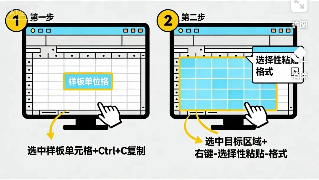 操作技巧:先设置好一个单元格的目标格式,选中该单元格后按「Ctrl+C」复制,再选中需要统一格式的所有区域,右键选择「选择性粘贴」-「格式」,瞬间让整个表格格式统一,省时又美观。