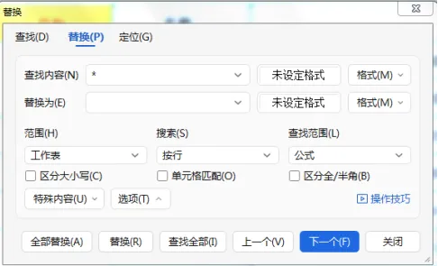 需要在ctrl+H中,点击 "选项"勾选"使用通配符" ✅,我的软件居然没找到。老师说过,如果急着交表,那么先以最熟悉的方法把眼前的表做出去再说。于是我用了方法二