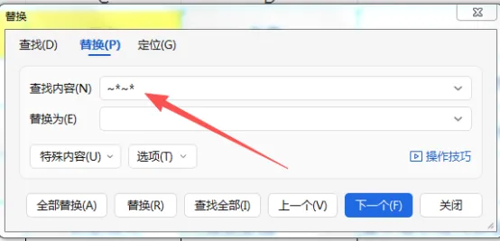 查找 ~* → 替换(单个星号)