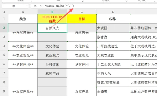当然,我也尝试过用函数:=SUBSTITUTE(A2,"*","")
