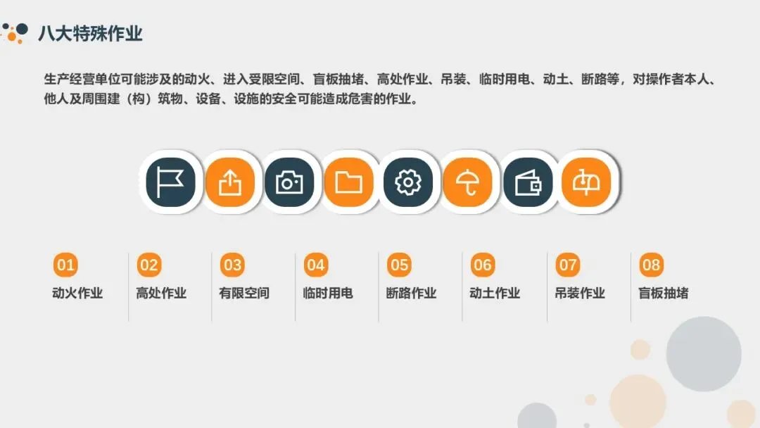 当前位置:首页>PPT>PPT ‖ 特种作业课件49-八大特殊作业安全要求及相关人员职责(87页)