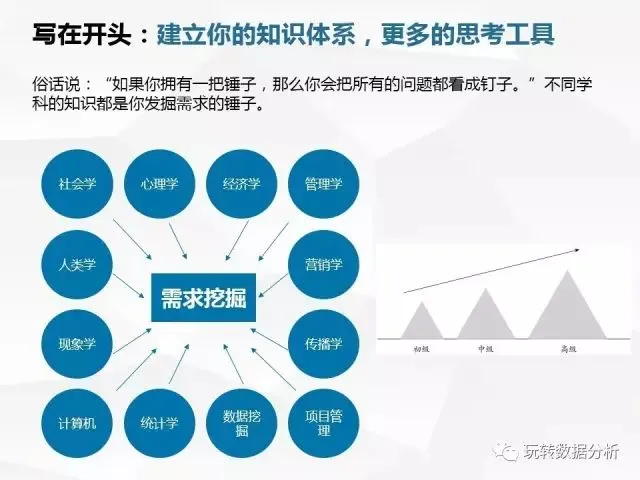 内容主要有:如何建立知识体系?如何找到合适的主题?如何确定分析框架?如何寻找数据源?以及分析报告的编写流程与标准、行业分析案例、常用的方法论等等……