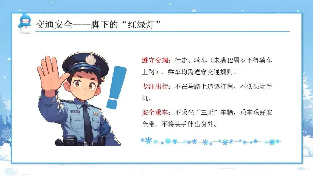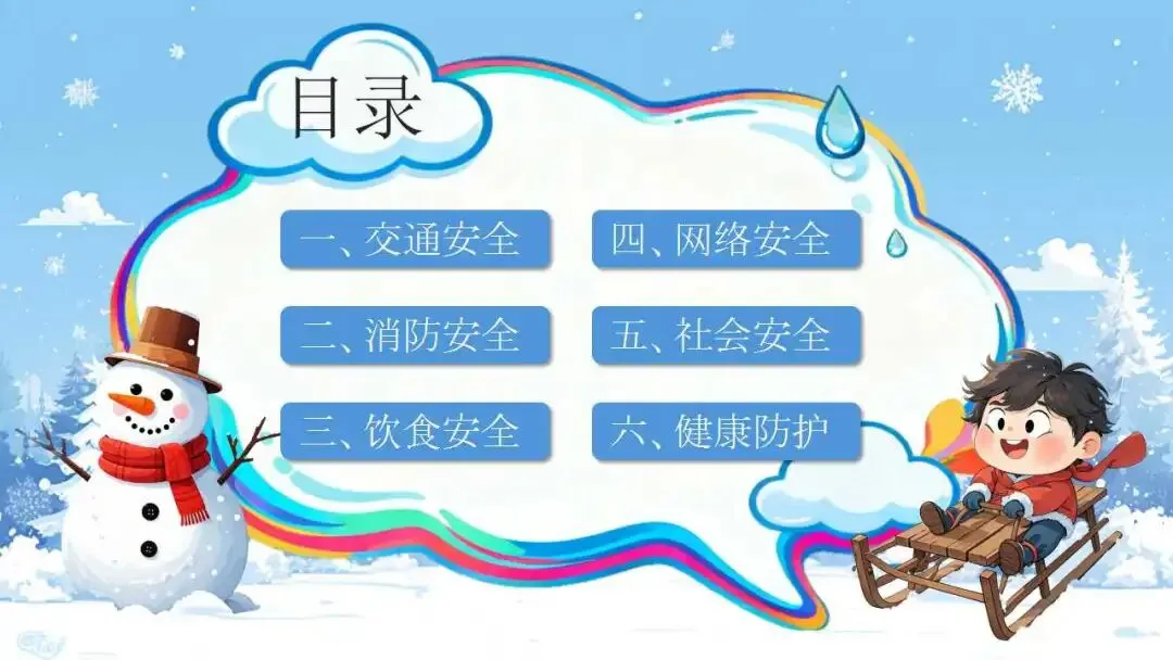 中小学安全教育班会ppt:冬季寒假安全教育。