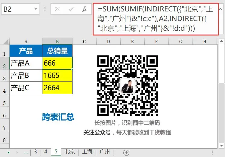 还是上面的数据源,要求根据产品对多工作表按条件跨表汇总。