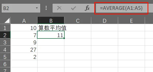 Excel2016中使用AVERAGE函数计算算数平均值:
