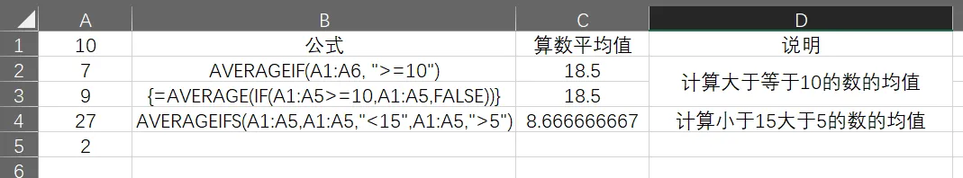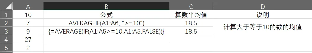 可以看出来使用IF函数与AVERAGE函数要实现同样的效果需要更复杂的数组公式才能实现。AVERAGE函数简洁很多。