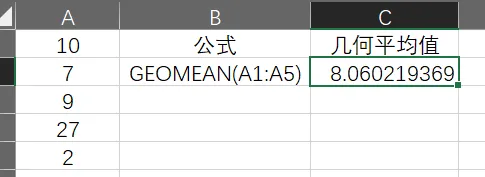 在Excel 2016中使用GEOMEAN函数计算几何平均值