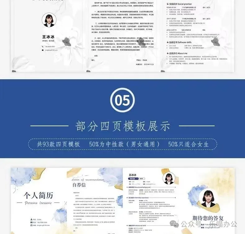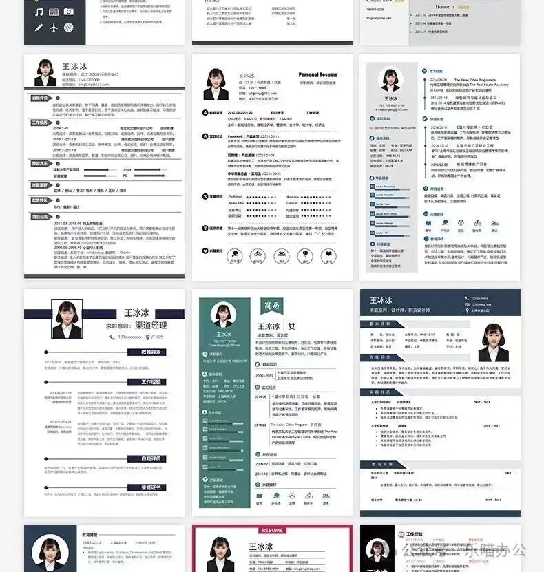 包含各种风格,我相信总有一款适合你,有中文简历、一页纸简历、求职信、英文简历、两页纸简历、封面和表格等多种简历模板,保证让 HR 看得心花怒放。