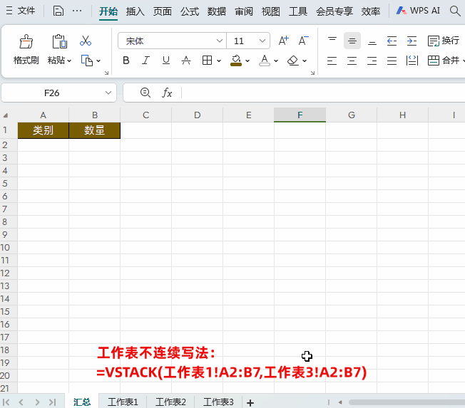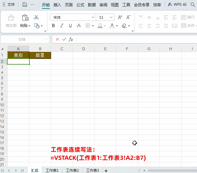 掌握VSTACK跨表引用的规则,是发挥其威力的关键。合并连续工作表(如Sheet1, Sheet2, Sheet3):公式写法:=VSTACK(Sheet1:Sheet3!A2:B7)鼠标操作:单击Sheet1标签,按住 Shift键再单击 Sheet3标签,最后选择区域 A2:B7。合并不连续工作表(如只需Sheet1和Sheet3):公式写法:=VSTACK(Sheet1!A2:B7, Sheet3!A2:B7)鼠标操作:分别进入Sheet1和Sheet3工作表,逐个选择区域。