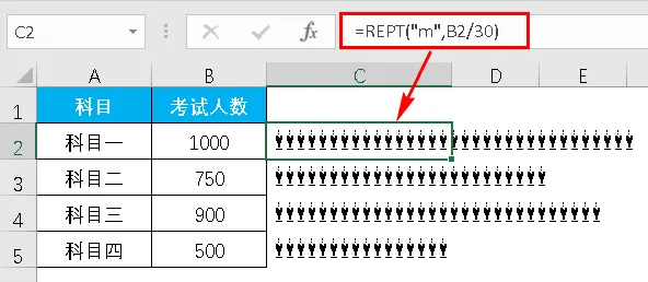 第一步:将C2:C5单元格区域设置字体为Webdings