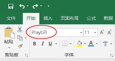第一步:将B2:G2单元格区域设置字体为Playbill