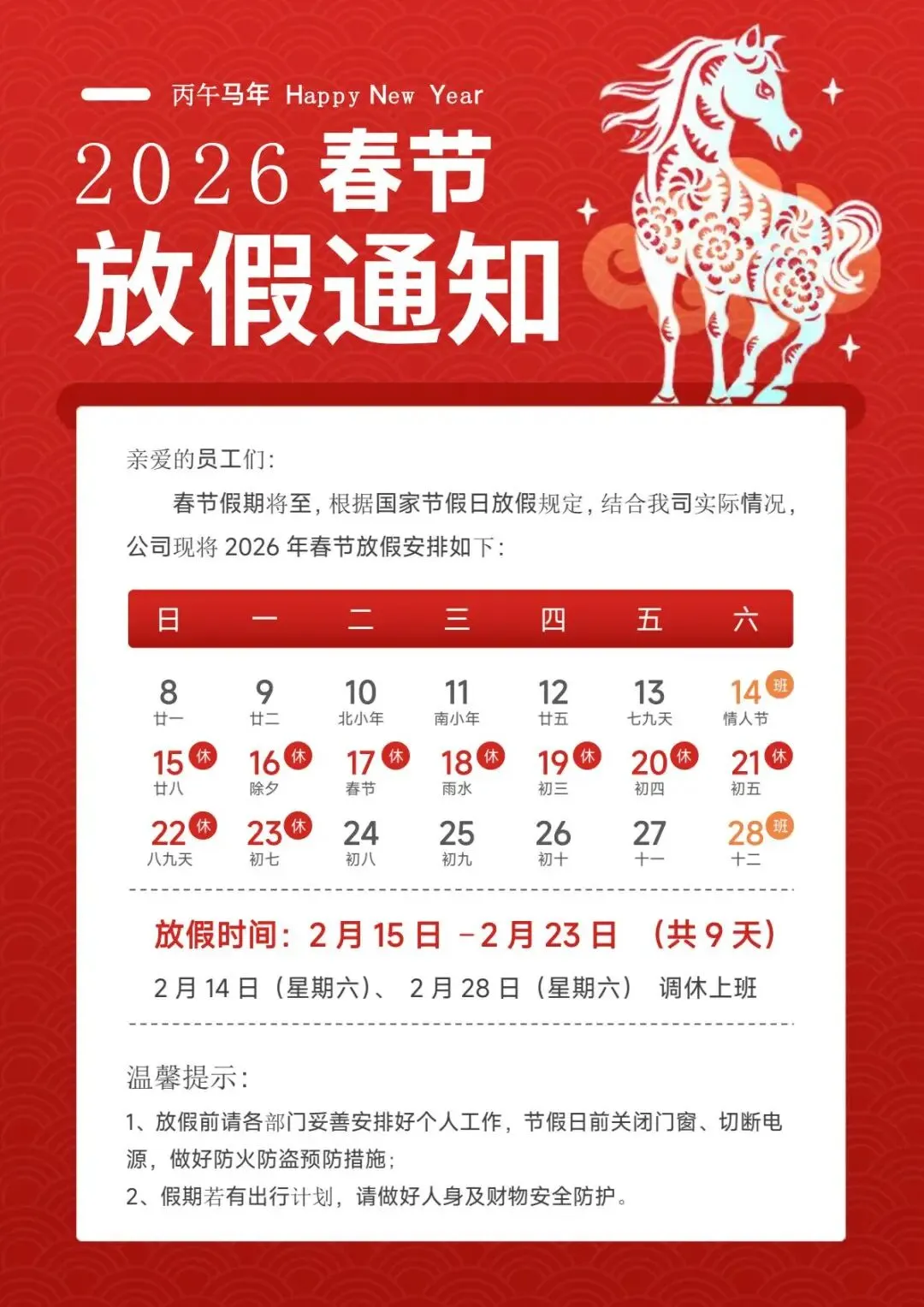 🔥重磅官宣!2026马年春节放假安排定了!连休9天!史上最长春节假终于来啦!