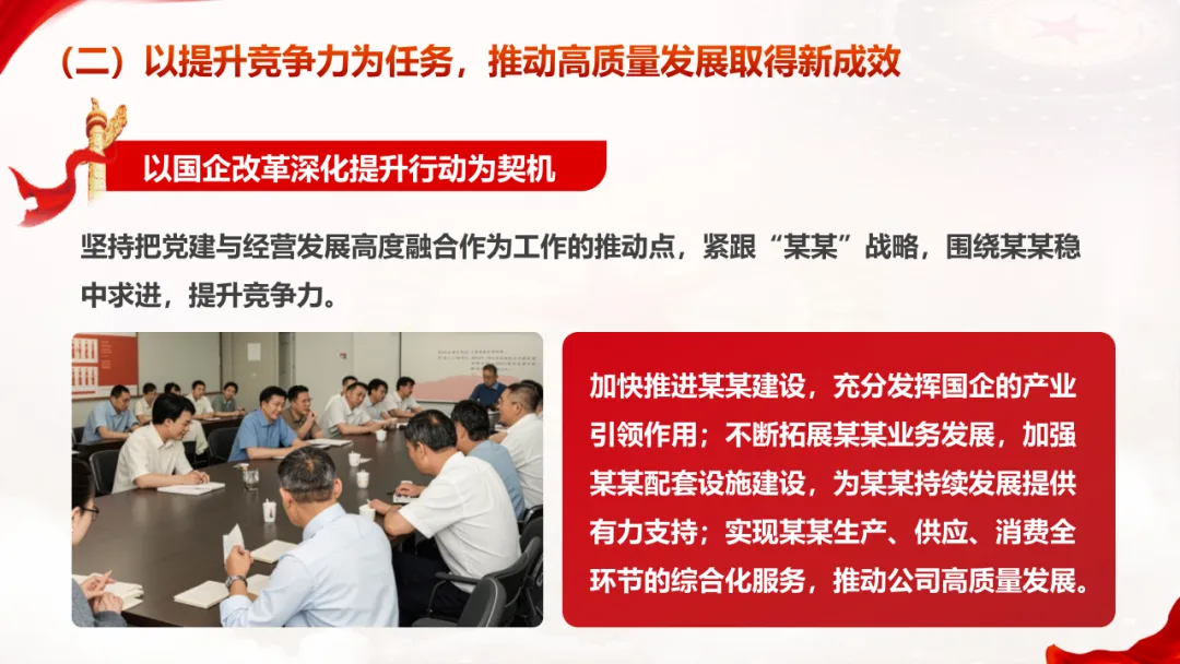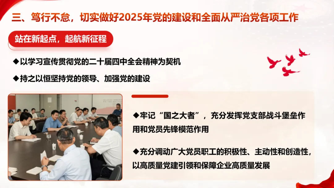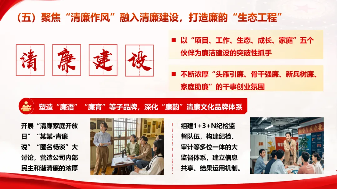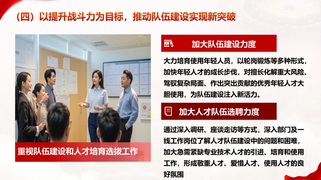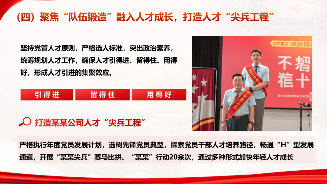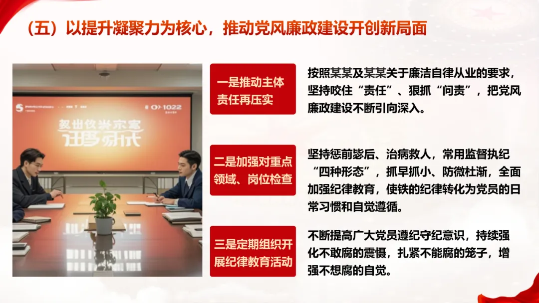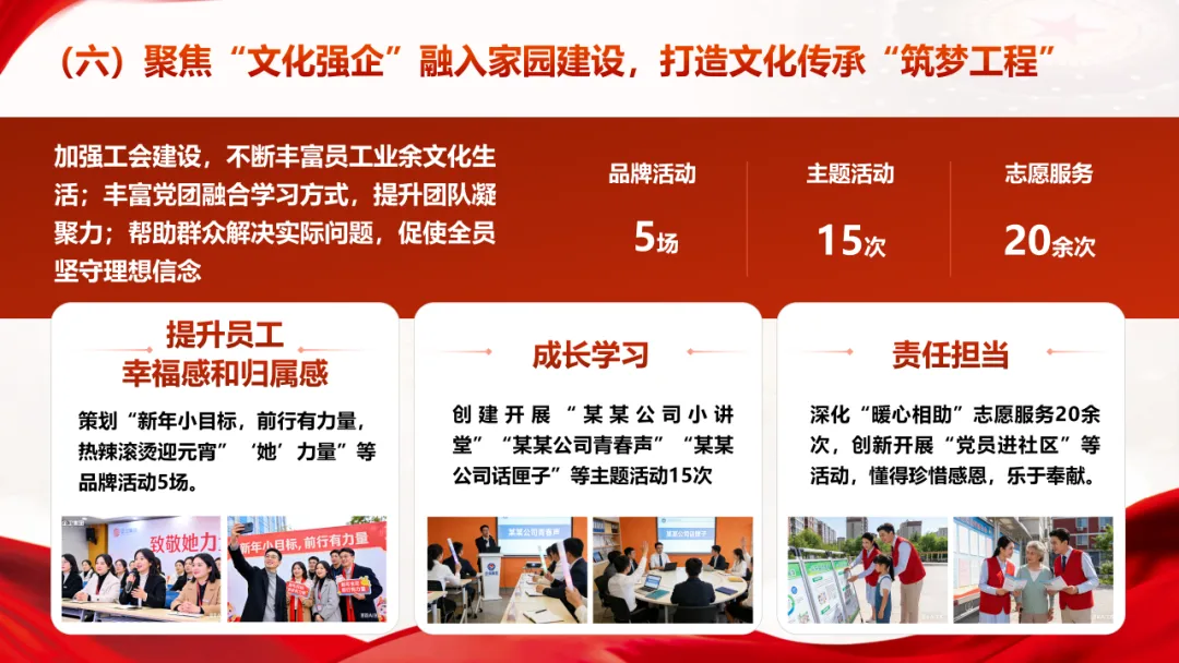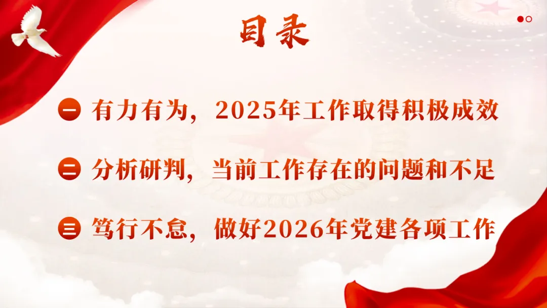 最新PPT《创新“六聚六融”党建工作体系 以高质量党建引领保障高质量发展——某某公司党支部2025年度书记述职报告》课件,助力年终述职。PPT页面精致,结构明晰完整,系统展示国企党支部书记年度述职的系统框架与具体实践。