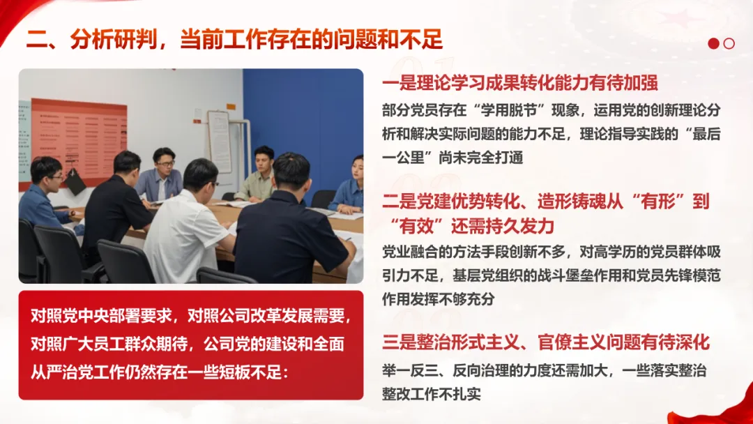PPT共20页,配套讲稿4000字,时长20分钟。支持编辑修改,图片可以替换,简便快捷。核心内容有三个部分:2025年工作成效展示、问题分析、2026年计划制定。可作为企业支部书记年度述职的高质量PPT模板。