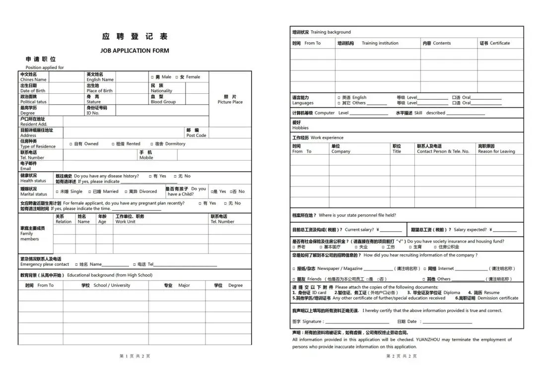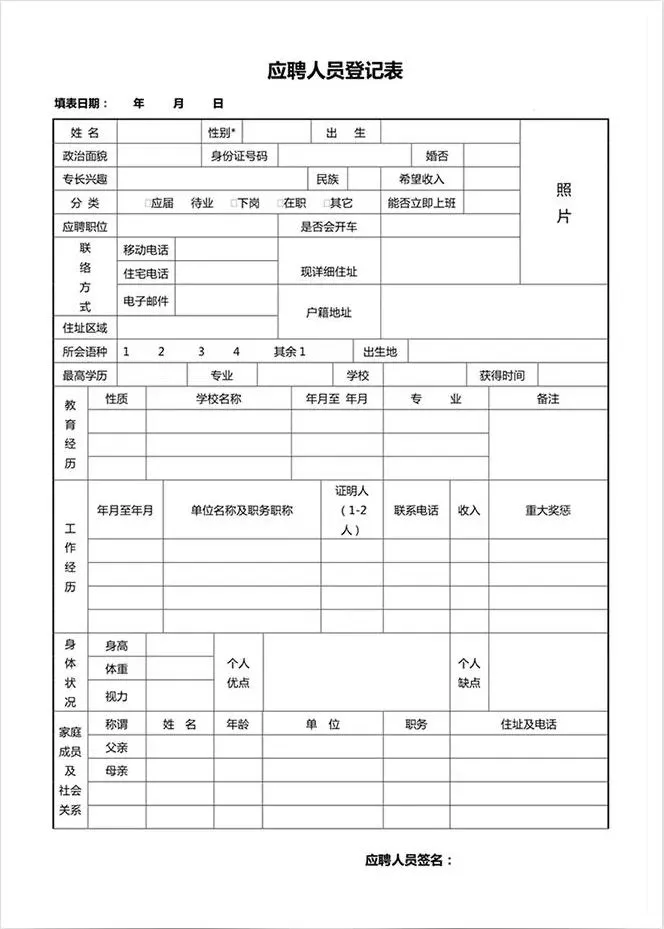 回复关键词“员工应聘入职登记表”领取!