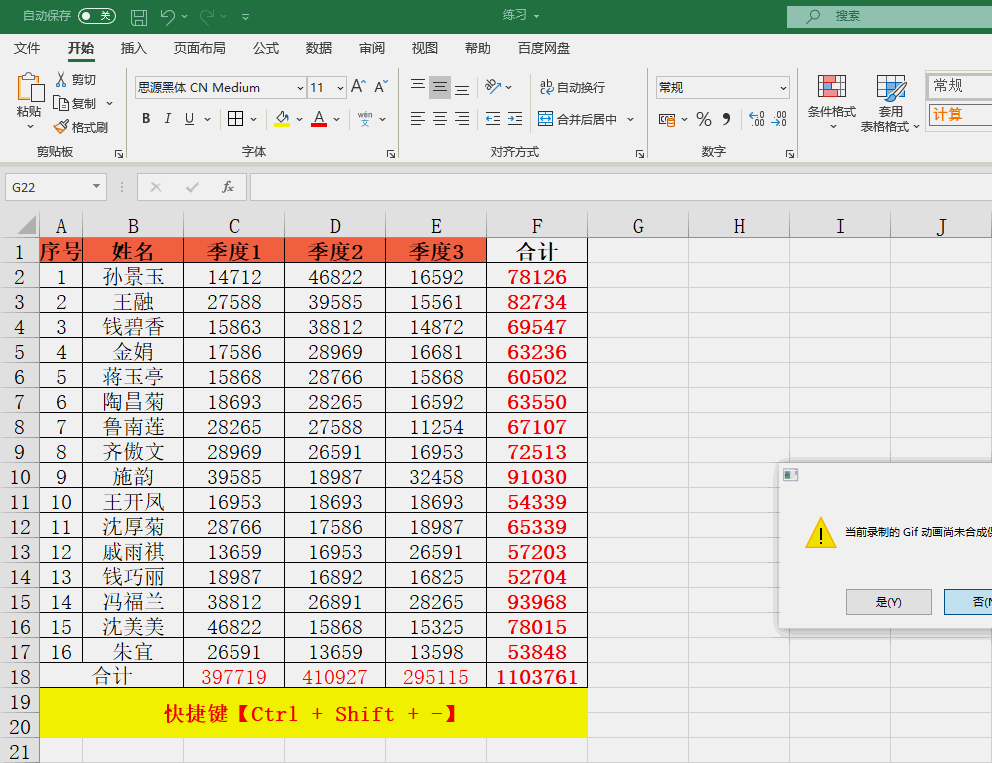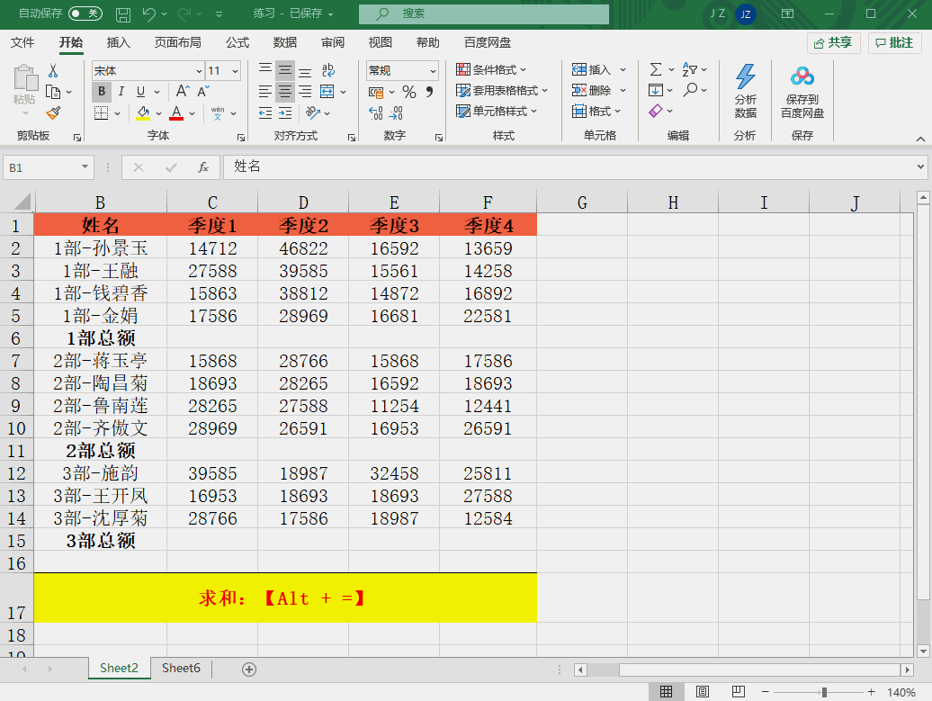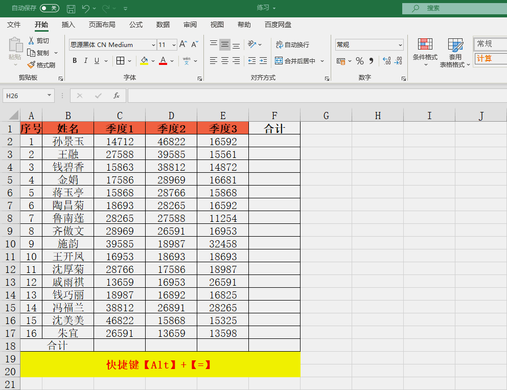 选定目标单元格区域,包括需要计算的求和区域,按住快捷键【Alt】+【=】即可