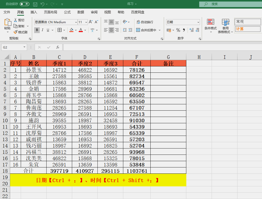使用快捷键【Ctrl + ;】可以快速插入当前日期