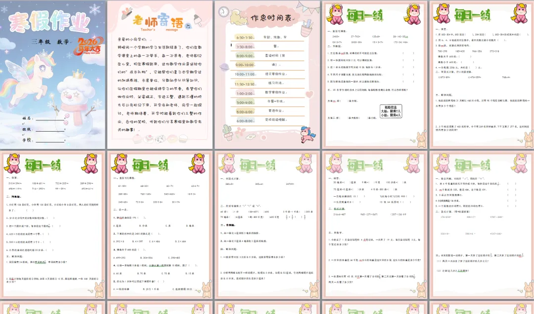 三年级数学寒假作业