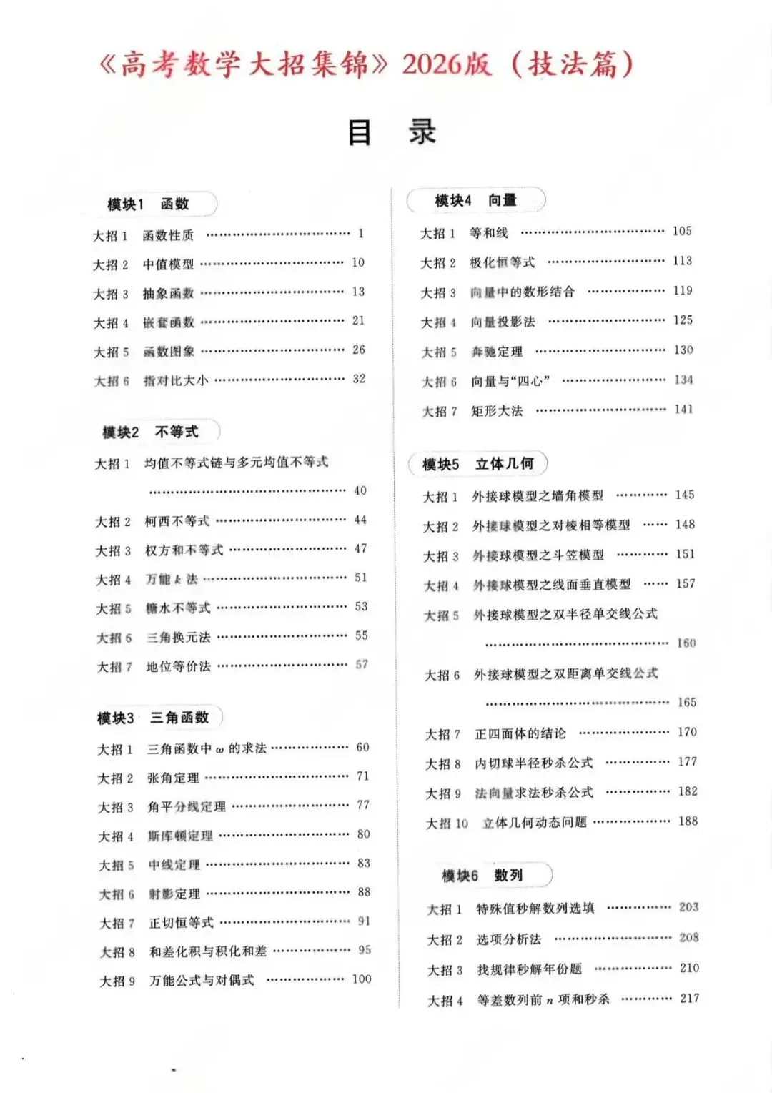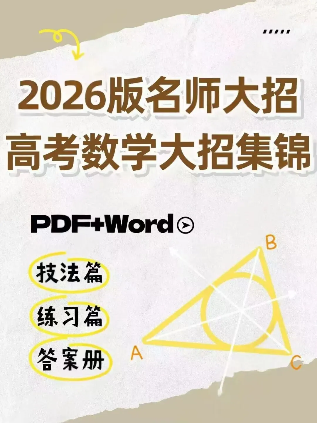 【B-015】🔥2026版名师大招高考数学大招集锦PDF+Word,无水印可编辑可打印,技法篇、练习篇、答案册。📚📚详情:包含九大模块:函数、不等式、三角函数、向量、立体几何、数列、概率与数理统计、圆锥曲线、导数。