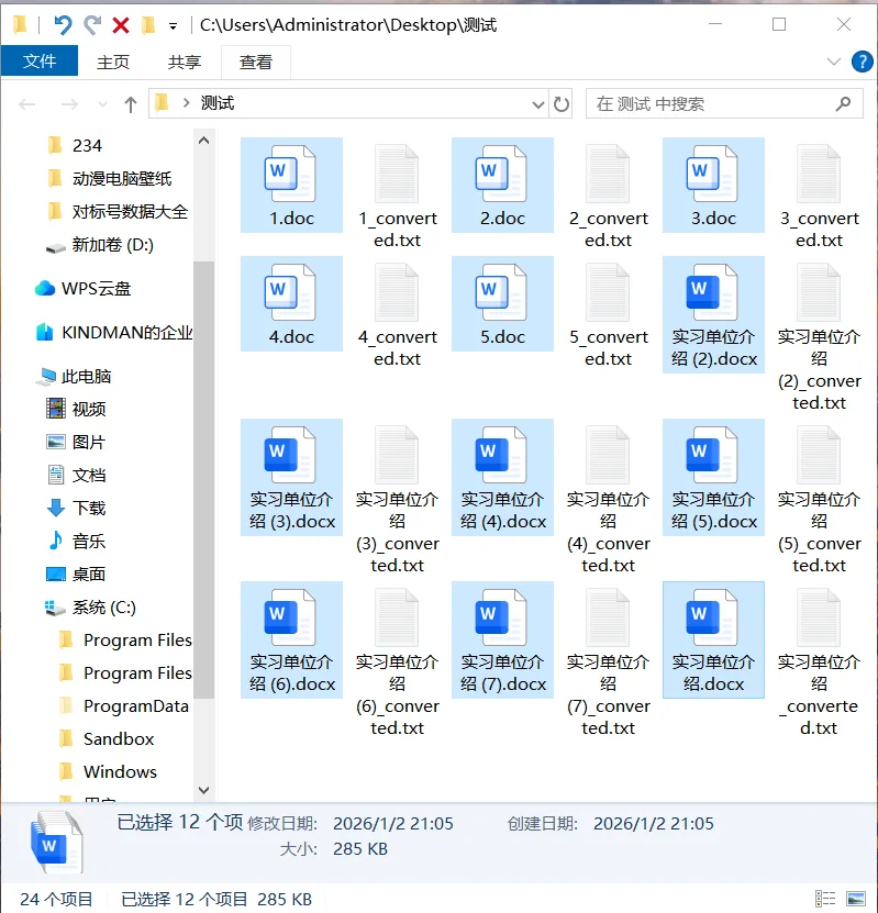 - 查看结果:转换完成后,软件不会让你去设置保存路径。它非常贴心地默认将生成的TXT文件保存在原Word文档的同一目录下。你只需要回到原来的文件夹,就会发现每个Word文件旁边都多了一个同名的TXT文件。
