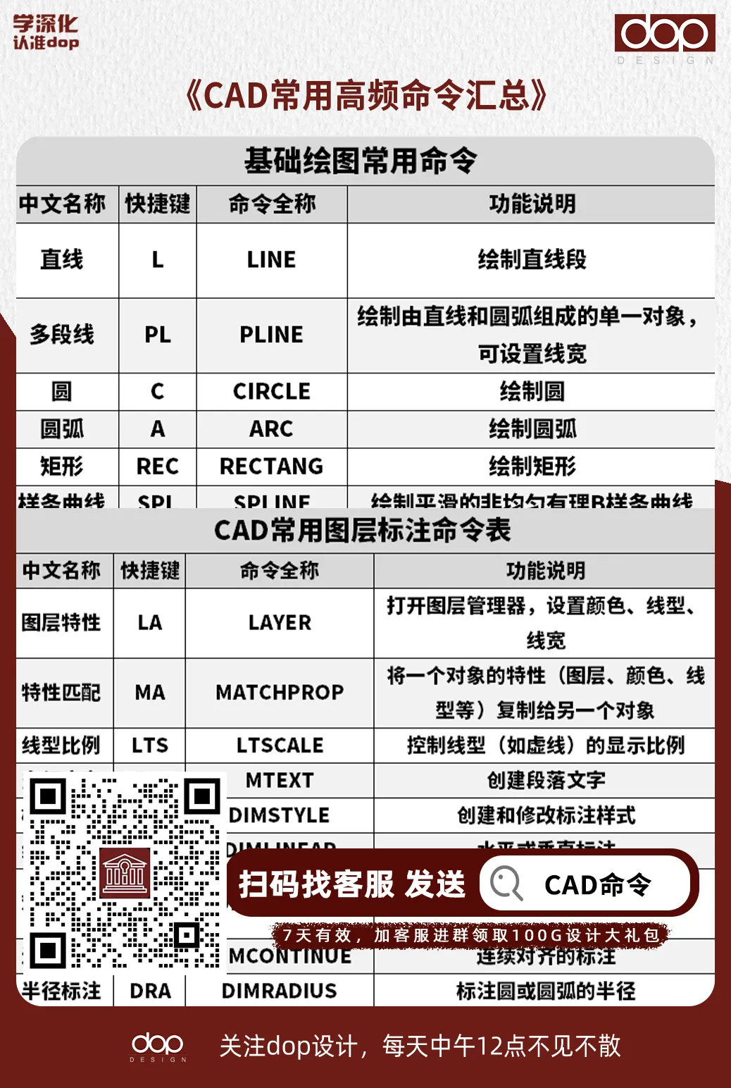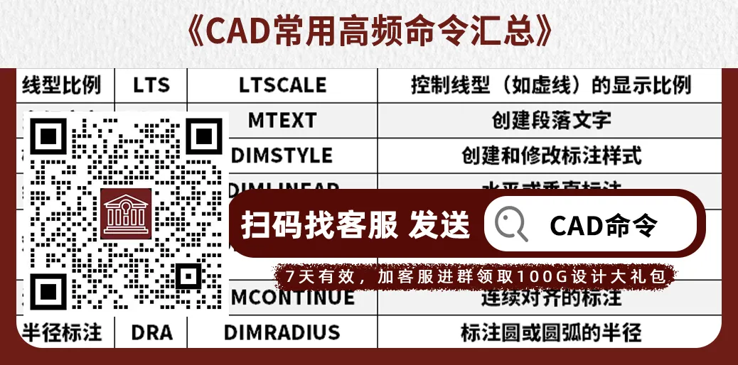 小编这里有《CAD常用高频命令汇总》需要的朋友可以扫码领取哈