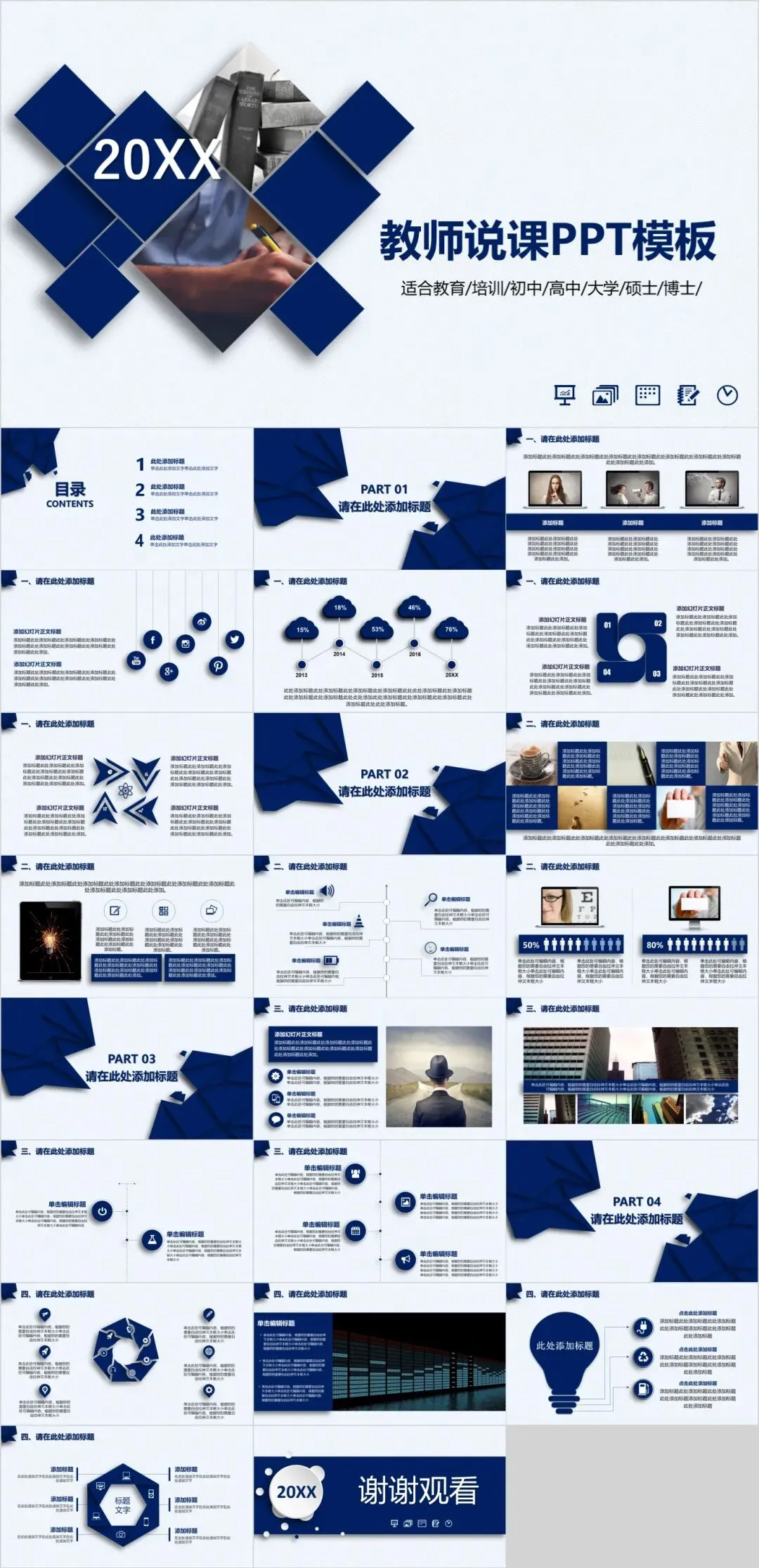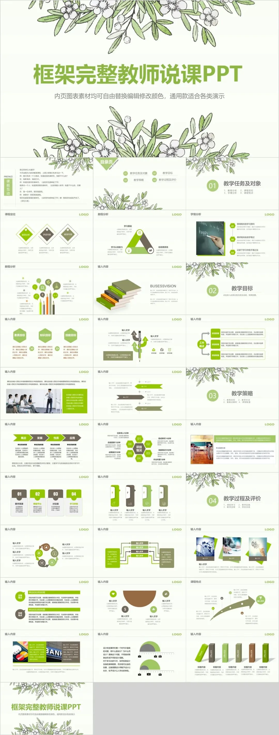 本文分享内容(教育说课、课件系列模板)