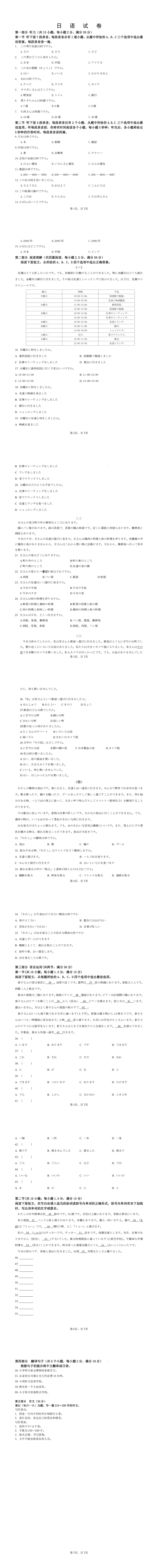 >解析!WORD至人教新版七年级1-9课日语试题(作文:翻译;私の一日)+听力+答题卡+答案详解及听力原文