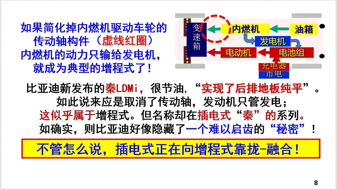 但在本次大会上,其演讲主题是增程式电动汽车的发展,显然不是他的专长。所以杨院士说他基于后排地板纯平猜测比亚迪取消了传动轴,这个言论如此的不严谨!