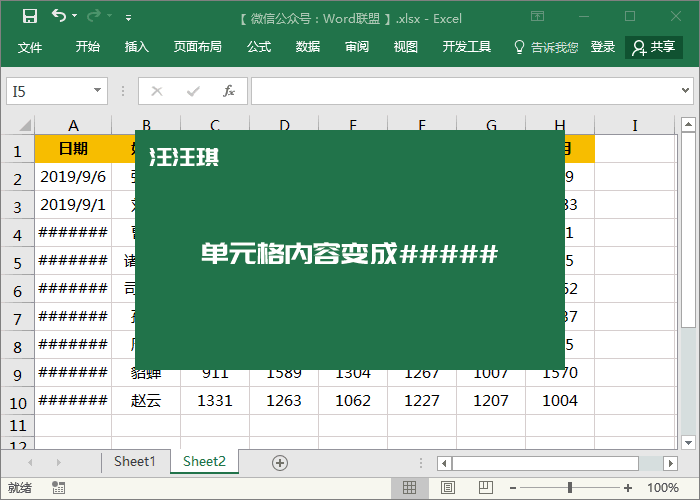 问题:打开表格后,发现其中有些内容变成了#####。