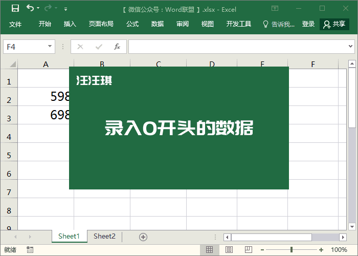 问题:单元格中开头输入的“0”会消失不见。