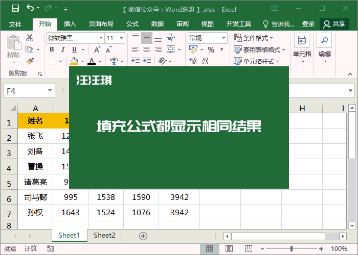 问题:为什么我填充的公式,所有结果都显示一样?