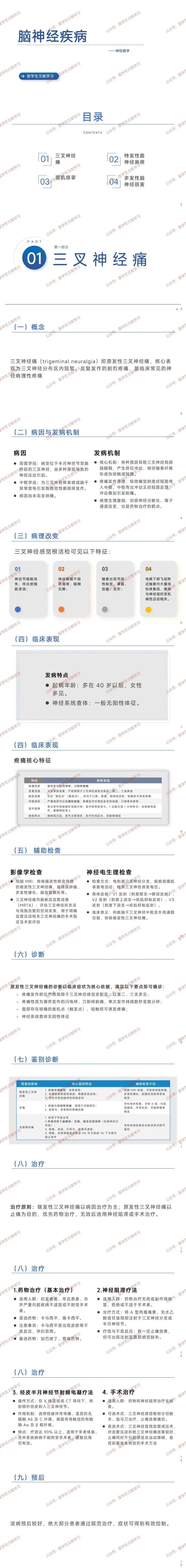 - 鉴别:与继发性三叉神经痛(持续性疼痛、伴感觉减退)、牙痛(持续性钝痛)、舌咽神经痛(吞咽诱发)区分。