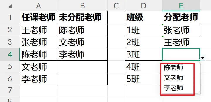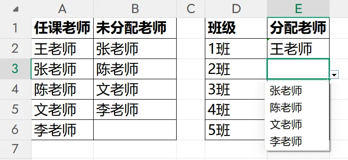 ✅ 张老师和王老师就不会显示✅ 只剩下其他未分配老师