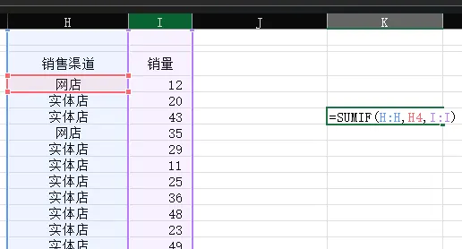 这样就可以分别计算求和不同的销售渠道对应的销量是多少。