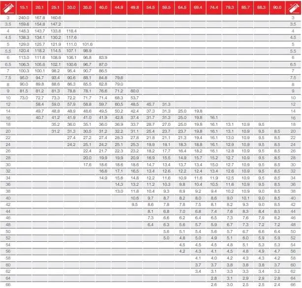1、参考性能表,确定满足此条件的某型号,并把各项参数按照计算逻辑列出: