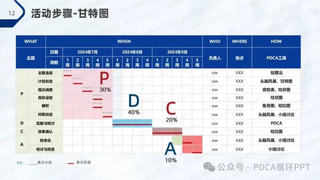 为确保活动顺利进行,本次项目将采用PDCA循环的方法,确保每个阶段的任务有序推进。在此基础上,我们还将结合甘特图进行进度规划,明确每个环节的负责人及时间安排,确保各项任务按期完成。