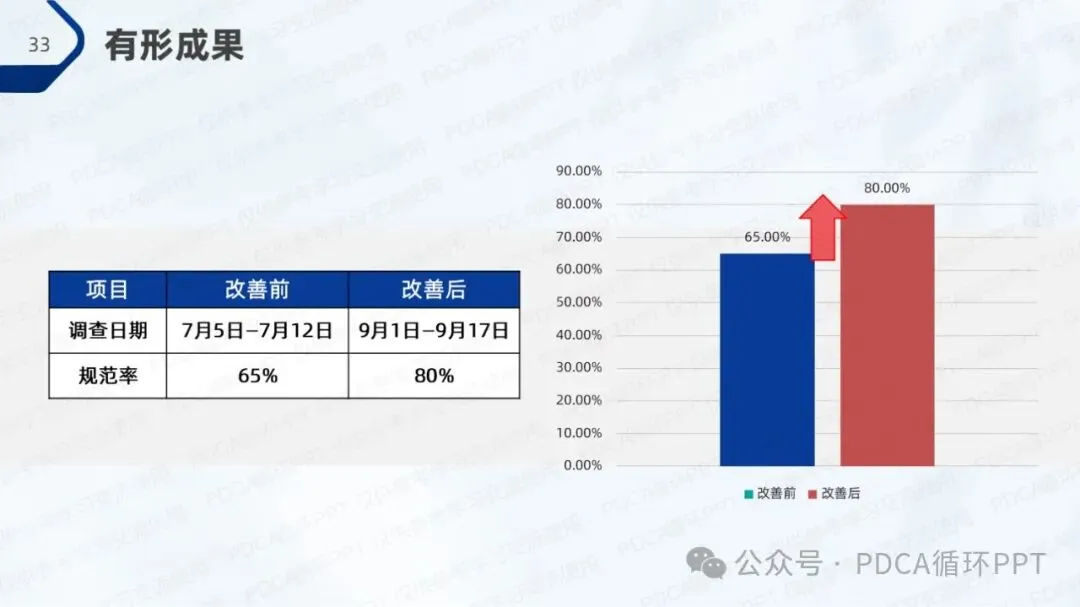 通过对比柏拉图和柱状图,可以清晰看到改进后的成效,操作规范率得到了有效提升,且改进措施取得了预期的效果。