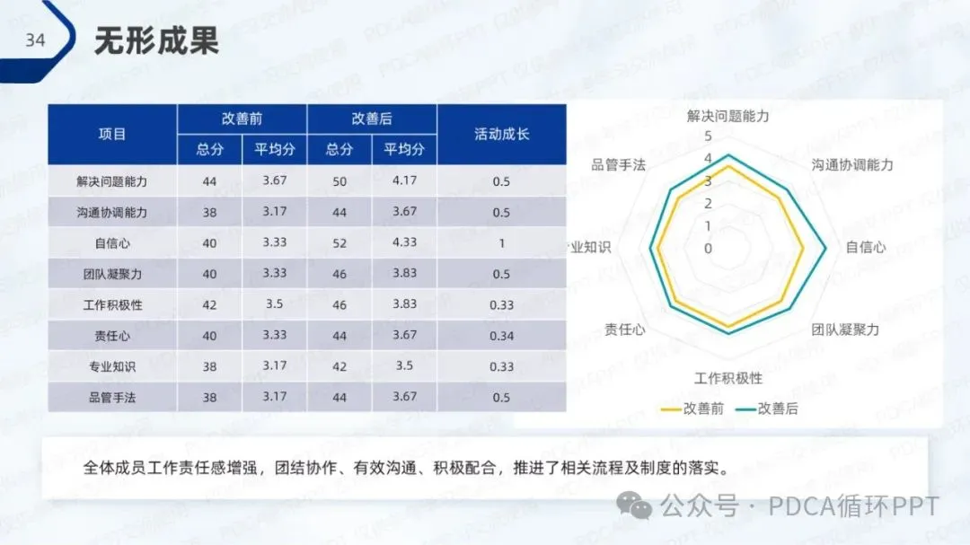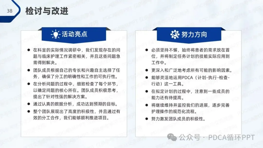 通过本次改进活动的总结,团队认识到持续的自我评估和优化是提升工作质量的关键。今后,将继续完善操作流程,并不断进行技术培训和规范化管理,推动工作质量的持续改进。