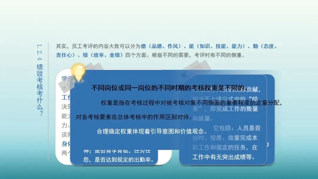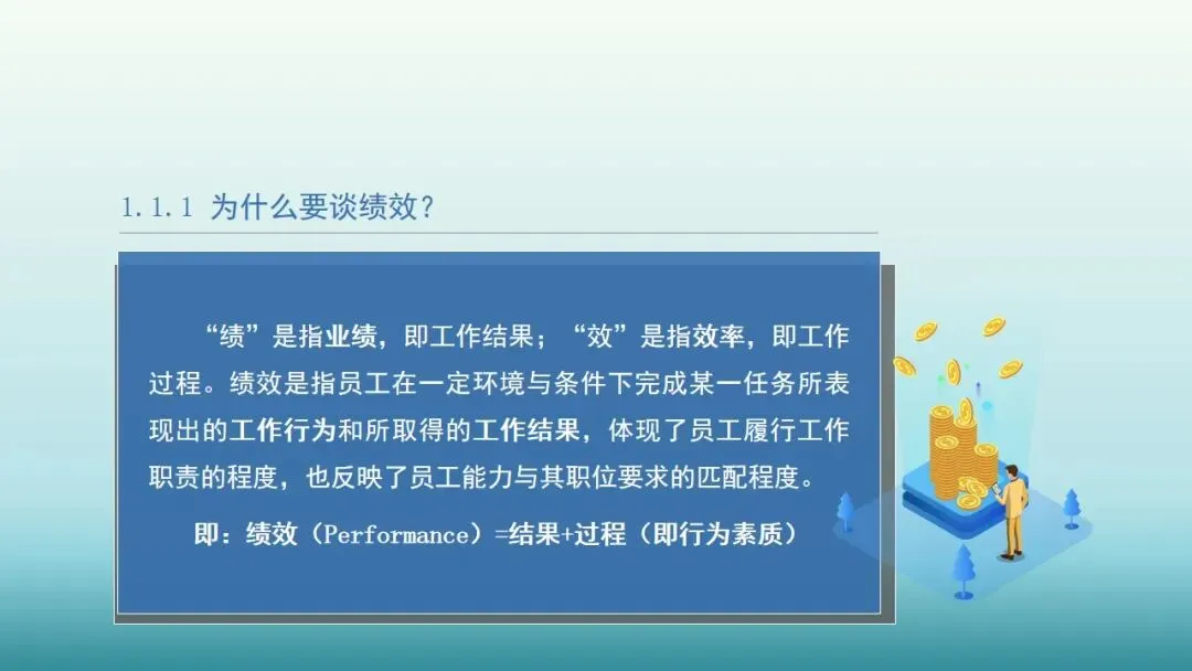 “绩”是指业绩,即工作结果;“效”是指效率,即工作过程。