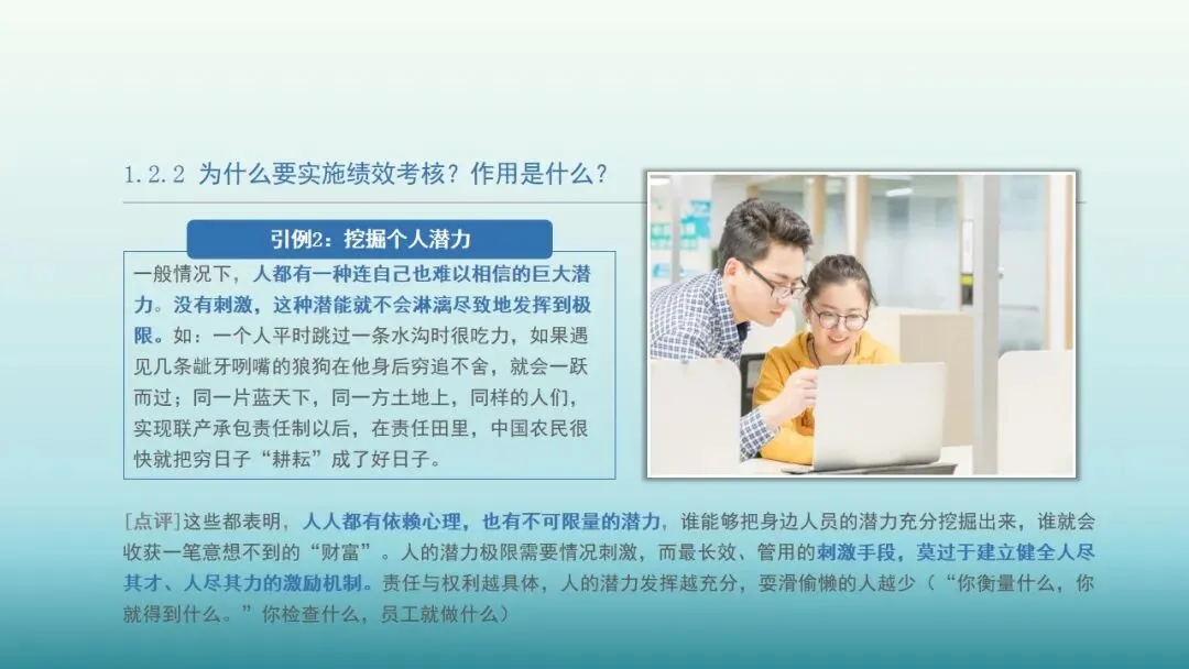 而综合以上两点,也就是实施绩效考核。