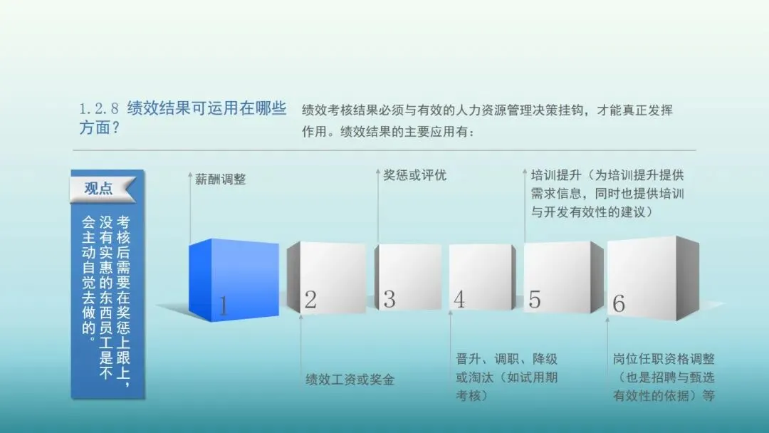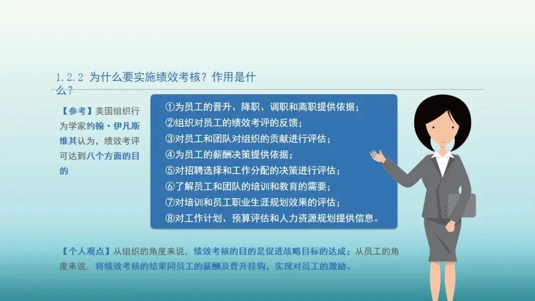 【参考】美国组织行为学家约翰·伊凡斯维其认为,绩效考评可达到八个方面的目的:
