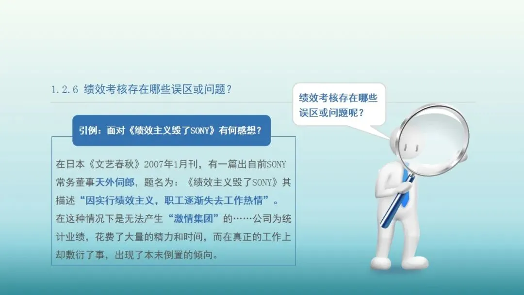 因此,如何在员工日常表现中制定一些明确的绩效标准以期奖惩分明,同时据此施行适当的在职训练,有系统地持续绩效考核工作,这是人力资源管理的一个重要内容。